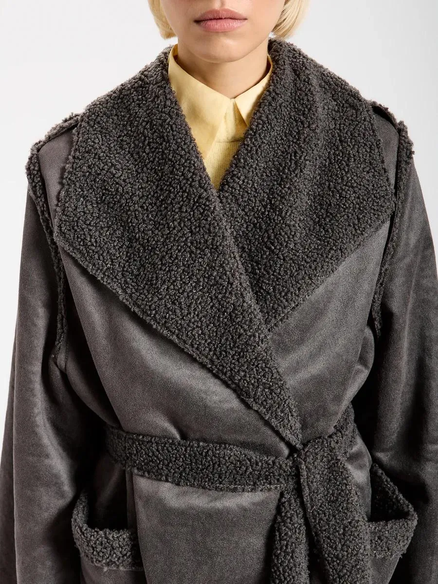 Сшито из двухстороннего материала с имитацией овчины и замши, оно не только прекрасно смотрится, но и защитит вас от весенних капризов погоды благодаря водоотталкивающему покрытию.