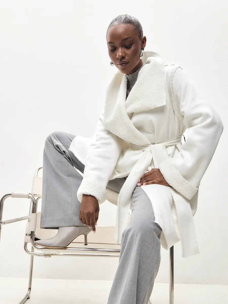 Сшито из двухстороннего материала с имитацией овчины и замши, оно не только прекрасно смотрится, но и защитит вас от весенних капризов погоды благодаря водоотталкивающему покрытию.