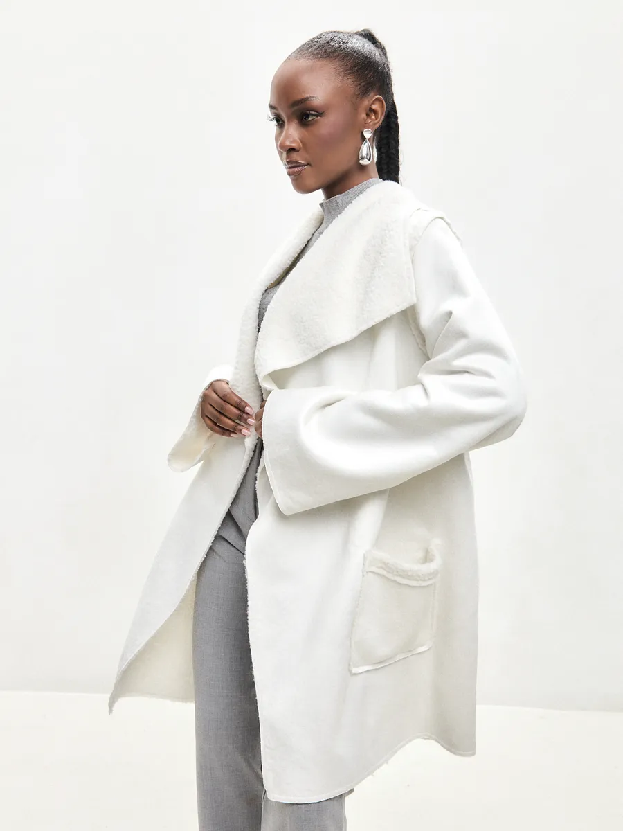 Двусторонняя модель дарит вам вариации образов, а накладные карманы и пояс добавляют практичности. Этот жакет создан для женщин, ценящих комфорт и неповторимый стиль.