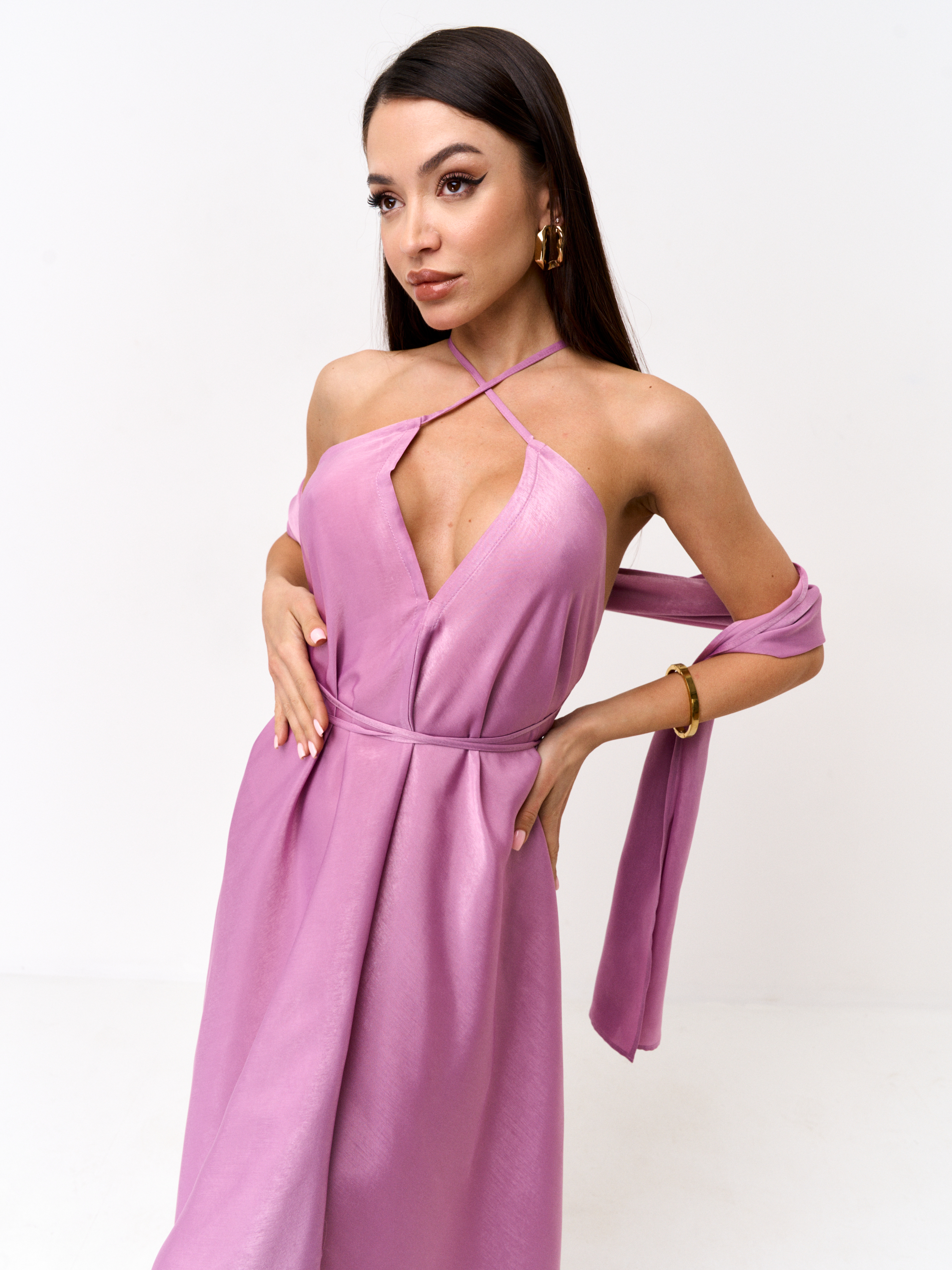 Удивительное платье трансформер из летящей летней ткани цвета Роза .