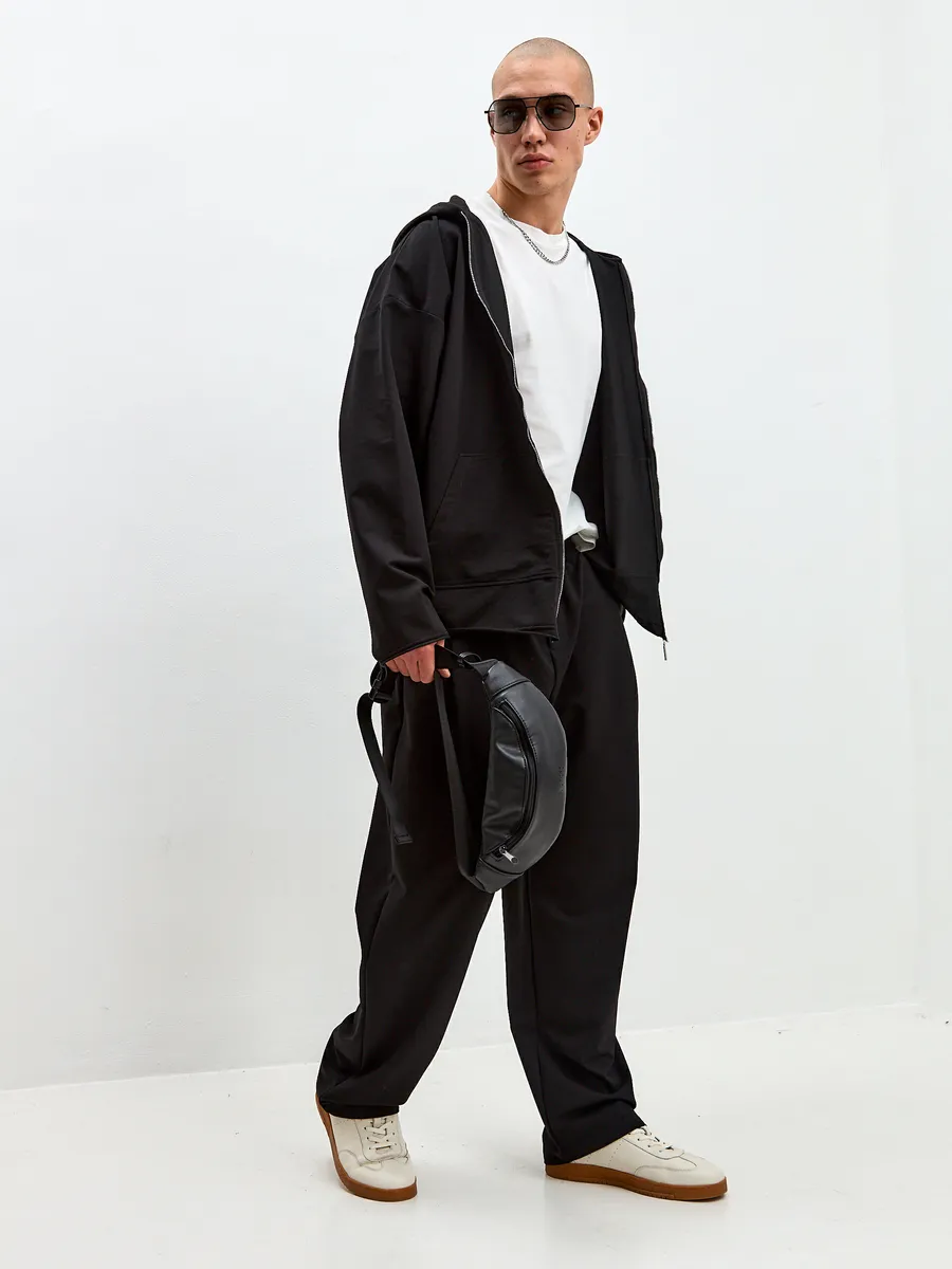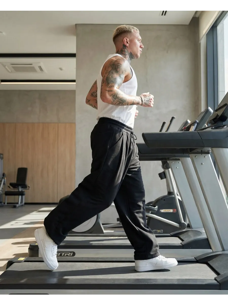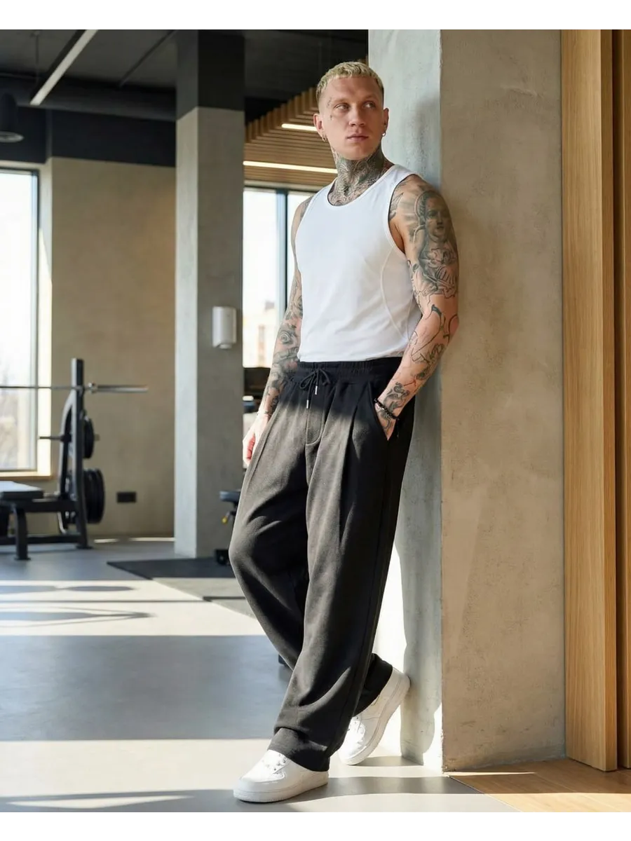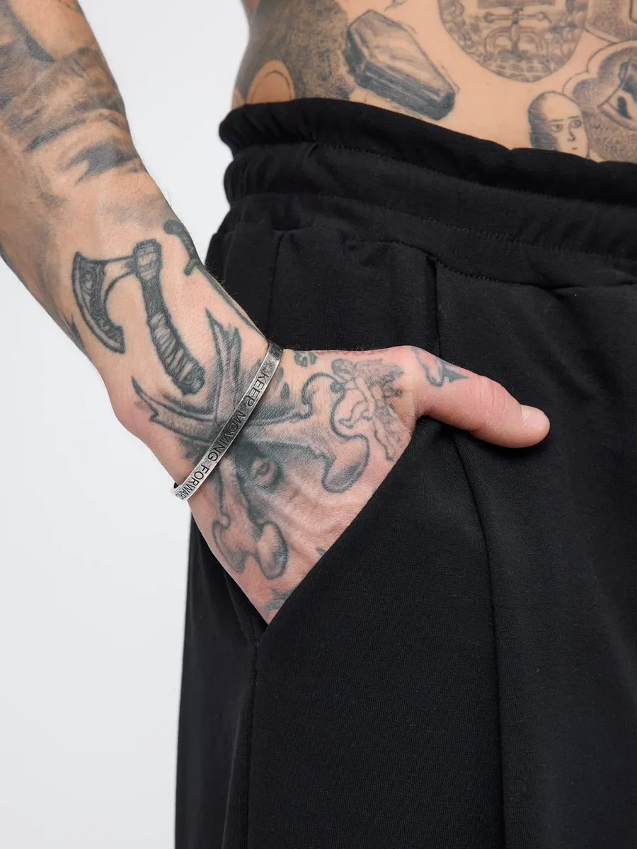 Чёрные брюки свободного кроя — универсальная UNISEX модель для мужчин и для женщин - на выход, в офис, для бега и тренировок в зале. Выполнены в прямом широком силуэте, обеспечивают комфорт и не ограничивают движения.